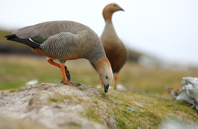Forty different breeding birds have been recorded including Magellanic, southern rockhopper and gentoo penguins, a large colony of imperial cormorants and many waterfowl. Sandy Bay is a beautiful beach where the Gentoo penguins gather and will be a highlight of any visit, but keen birders will also be enthralled with the ponds. Big Pond has two smaller ponds nearby – look out for Chiloe widgeon, silvery and white-tufted grebes, silver and speckled teal, black-necked swans and the rare flying steamer duck.