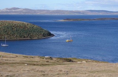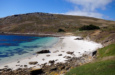 An attractive settlement is nestled into a sheltered harbour with a lovely white sand beach close by. Dolphins often visit the bay, particularly when a boat arrives. Magellanic penguins have made their burrows in the harbour area and various other birds can be seen including striated caracaras and turkey vultures. Fantastically sheltered flower and vegetable gardens are situated near the farm buildings.