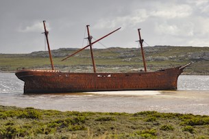 Gypsy Cove is an idyllic looking beach located just a 1.5hr walk from Stanley. To get there, follow airport road before taking a left turn to walk over Boxer Bridge, then follow the signs to Gypsy Cove. You'll pass Whalebone Cove on the way, where the shipwrecked Lady Elizabeth is an imposing sight just offshore.