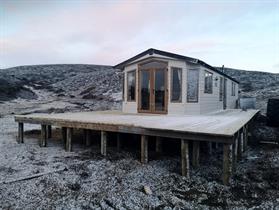 Scurvy Grass Snug is a purpose built static home that can sleep up to 6 guests. It comprises one double bedroom with ensued toilet and sink, one bedroom with two single beds and a double sofa bed in the lounge. There is also a bathroom with toilet sink and shower. It has gas fired central heating and hot water and also uses gas for cooking. There is a well equipped fitted kitchen which includes a built in fridge freezer, microwave, toaster etc. It is located in a sheltered valley to the west of Port Sussex Farm house and offers lovely views of the bay from the lounge windows. There is a large decking area, and also a hot tub.