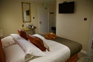 Guests have their own a small lounge area and dining room where breakfast is provided. Our ensuite bedrooms are all very well equipped, super king size zip link Hypnos beds, the rooms can be also arranged as two large singles to suit our guest needs. Lovely Egyptian cotton bedding and soft bath sheet, bathrobes and slippers are provided for guests to use during their stay. Desk, coffee & tea making facilities along with safe boxes, radio/clocks, hairdryer, charging ports, USB sockets, televisions (channels in English & Spanish) are allocated in each room.