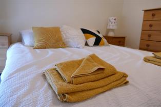 Upstairs there are two bedrooms, one contains a king-sized bed, and the other bedroom can either be a super-king bed, or two singles depending on your requirements. All of the mattresses have recently been replaced.