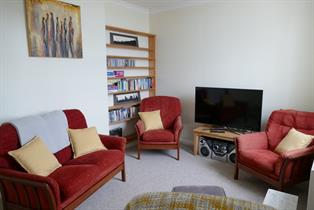 The dining room has a dining table complete with four dining chairs, and includes a small dedicated workspace. The sitting room has a beautiful outlook on to the harbour, and features a flat screen TV, a sofa, three armchairs, and various books, DVDs and games to keep you entertained in the evening.