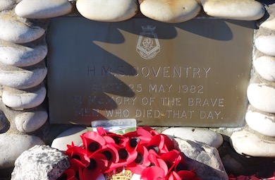 Located on Pebble Island in the northwest of the archipelago, the HMS Coventry memorial is a simple cross atop a cairn close to First Mountain, west of the settlement. HMS Coventry was attacked by Argentine A-4B Skyhawks on 25th May 1982. She had…