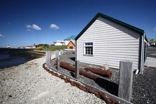 Located on Ross Road, in Stanley, the Historic Dockyard Museum contains many exhibits of social and maritime interest and is a “must-see” for all visitors. Life in the past is exemplified though farming stories, items for entertainment and relaxation, recreations of shops, homes and buildings including a wash-house and old smithy. Maritime exhibits include models, seafaring tales, artefacts and relics from ships stranded in the Islands. Natural history is also on display with the world’s oldest remains of the Warrah, a fox-like animal now extinct, and Falklands’ birds brought to life through taxidermy.