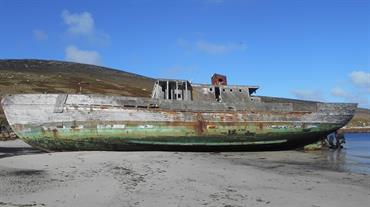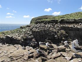 New Island is situated at the west of the Falklands’ archipelago. The terrain is varied with spectacular cliffs, white sand beaches and secret coves, rugged hills and some small open plains. It is an Important Bird Area with species including Gentoo, Magellanic and Rockhopper penguins, black-browed albatross, king cormorants, thin-billied prions, striated caracaras and peregrine falcons. The remains of a land-based whaling station are in the main harbour. Some cruise itineraries include New Island.
