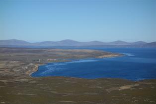Named for the attractive, unusual pebbles found on some of the beaches, Pebble Island is situated in the northwest of the archipelago. The terrain is varied with a chain of rocky peaks, a lakeland area and white sand beaches including the stunning 6.4km (4 miles) long Elephant Beach, the longest in the Falklands. The highest peak is First Mountain at 277m (909 feet). The island is a carefully managed sheep farm. It is an Important Bird Area with Gentoo, Magellanic and Rockhopper penguins; the latter occasionally interspersed with Macaroni penguins. The ponds and lakes in the east are home to waterfowl including the largest concentration of black-necked swans.