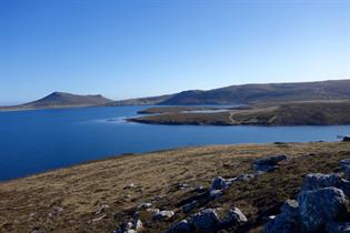Located in the southwest of West Falkland, tucked into a tiny corner of a large, open harbour, Port Stephens offers fantastic wildlife and walking opportunities. You can see all 5 species of penguins here, including macaroni, with the gentoos, kings, rockhoppers and Magellanic all breeding at Wood Cove and Stephens Peak along with many other species of birds. Marine mammals are frequently seen. “Indian Village” is a series of unusual rock formations which characterise a section of the farmland.