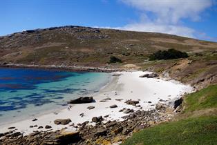 Originally named Albatross Island, West Point Island is located off the north-west tip of West Falkland and is home to black-browed albatross amongst other birds. The terrain is varied, consisting of dramatic sandstone cliffs, falling away to low lying areas of emerald greens. The highest point, Cliff Mountain is 381m (1,211 feet), the highest cliff in the Falklands. It is an Important Bird Area, alongside the albatross are Rockhopper penguins and Imperial Cormorants. Many other species can be seen. Whales, fur seals, sealions and dolphins are also frequently observed.