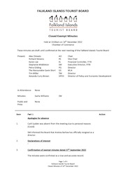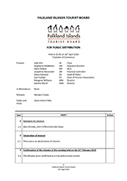Peruse the minutes of recent board meetings of the Falkland Islands Tourist Board.